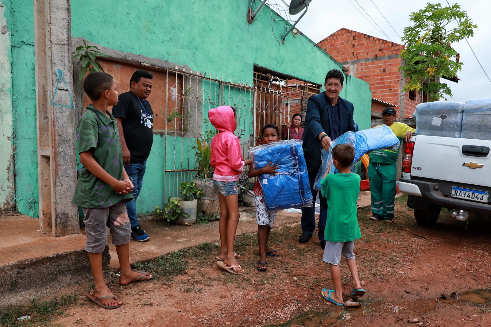 Saiba o que é fato ou fake sobre a onda de frio desta semanaMoradores recebem cobertor do governo em Cuiabá. Foto: Jana Pessôa/Governo MT